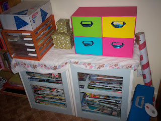 Three days after the decluttering when I thought the laptop was humming along nicely, it proved me wrong by dying completely. All I would get at startup was a grey screen. So the laptop is back at the shop (hopefully whatever's wrong will be covered by the extended warranty) and I've hooked the old monster computer up to the internet, and seriously thinking of buying an LCD screen for it, because the monster takes up the whole desk.